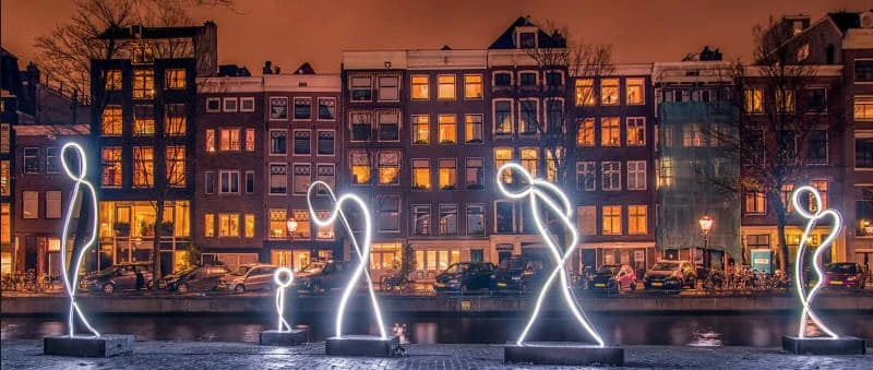 The Amsterdam Light Festival offers a breathtaking display of light art, best experienced from the serene perspective of the canals. Amsterdam is a city made to be admired from its waterways.